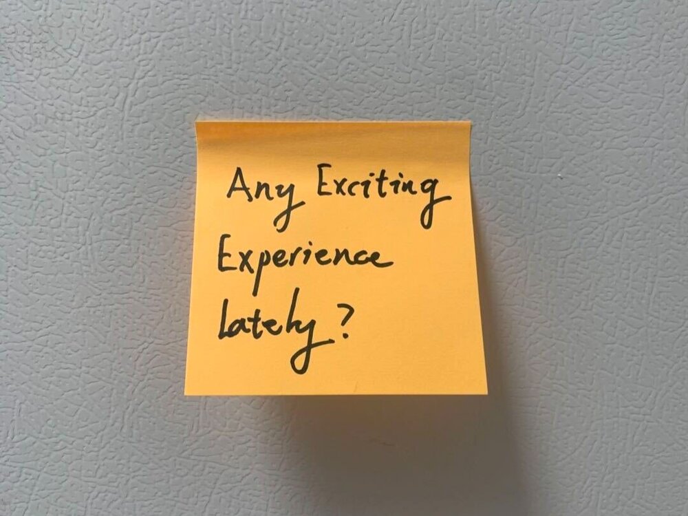 A post it note, placed on the rest area’s fridge with changing topics to invites people taking some time off to talk to each other and share thoughts and stories.