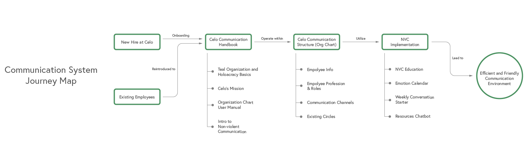 During onboarding, employees are presented The Gold Book of Values, we proceed to expand the book to be the go-to manual for communications at Celo, which include the following:Basics of a Teal organization and holacratic structureHow to navigate through the Organization ChartActionable ways to practice Non-violent Communication