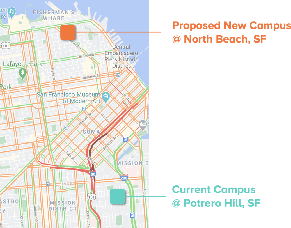 We partnered with The New School of San Francisco, a K-12 charter school with a diverse and dedicated family community, to explore the possibility of an innovative transportation solution for the students to their new campus.