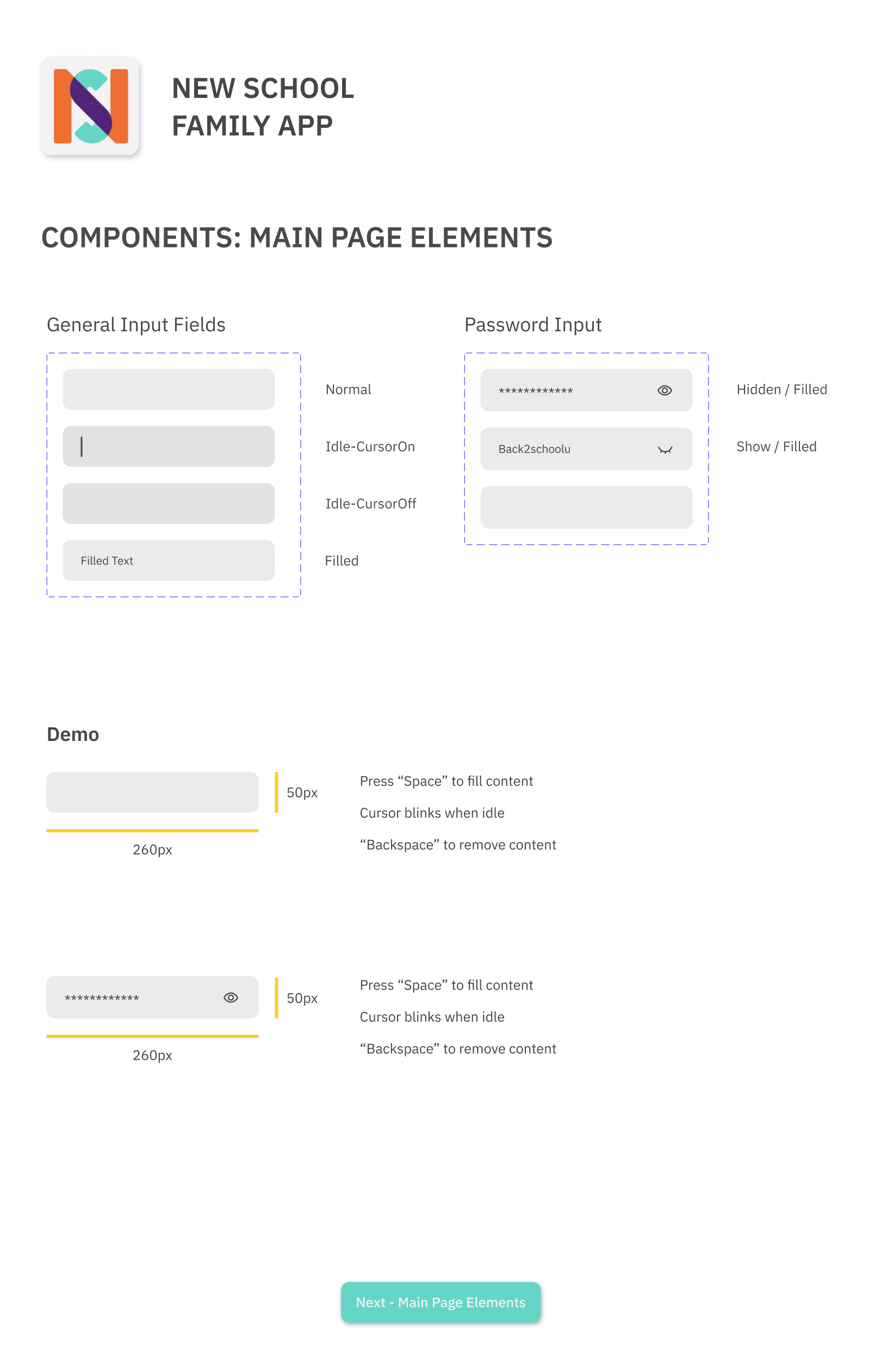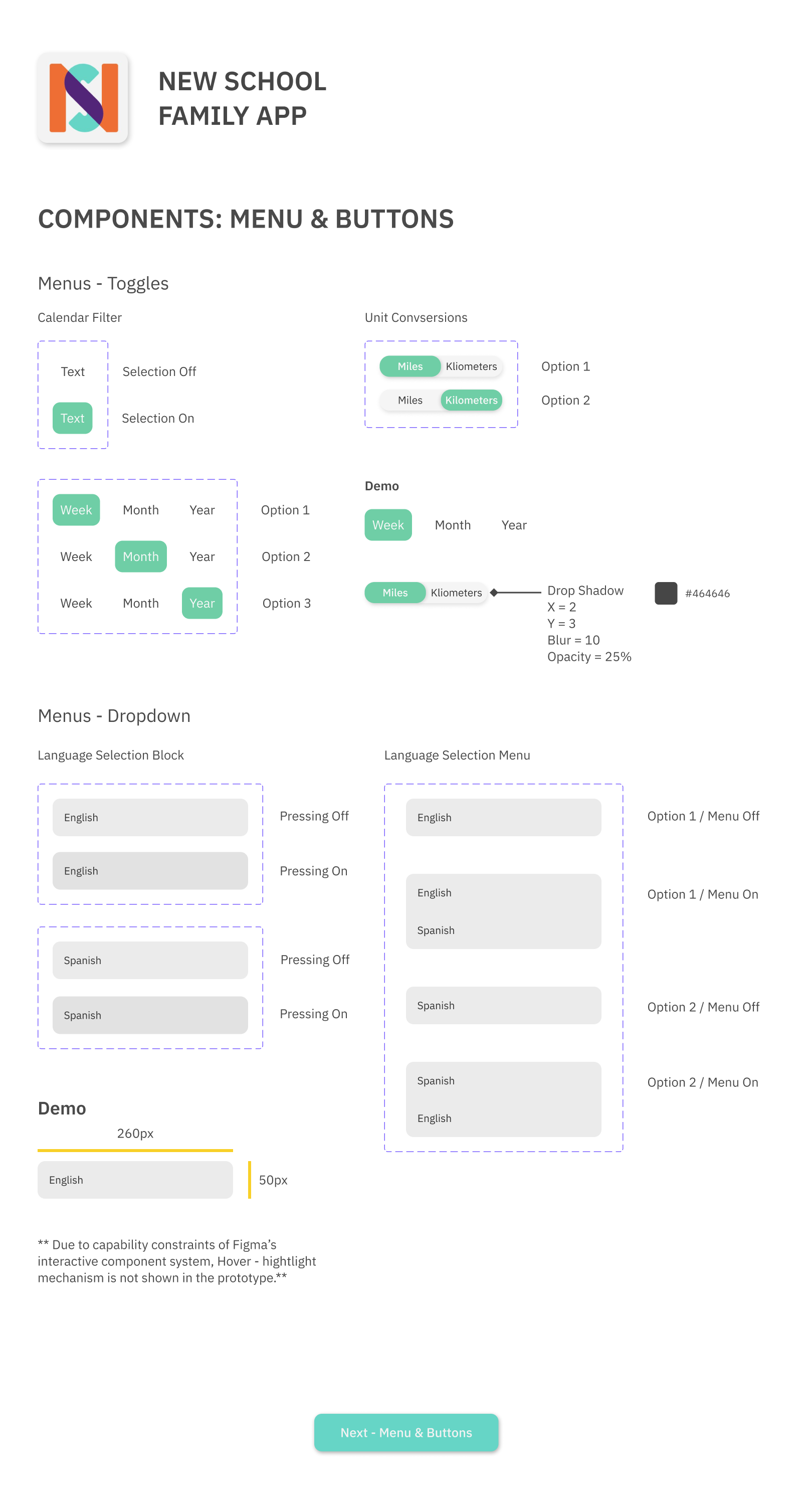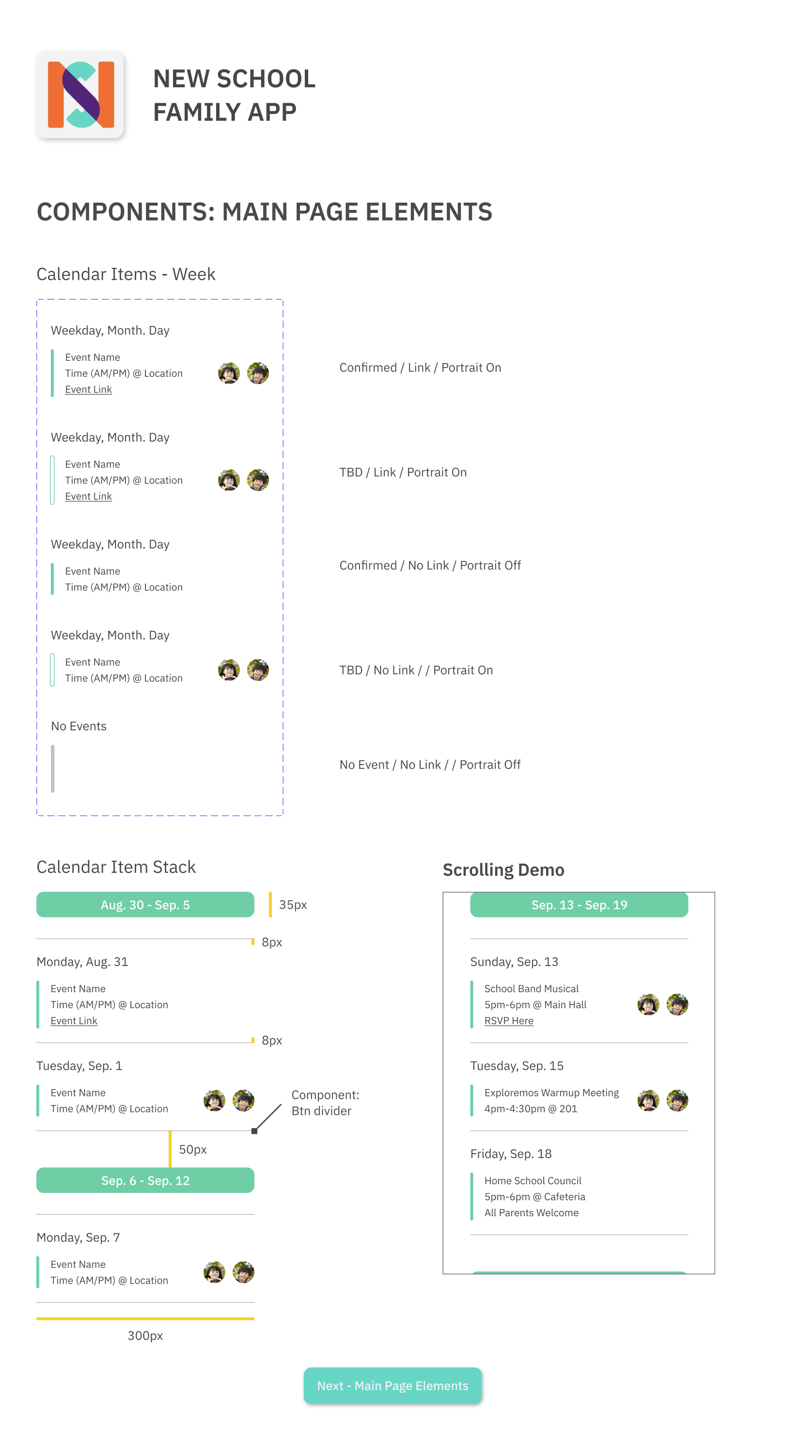 In order to align the mobile design with the rest of the program, I continued to use the New School’s color scheme and created a design guide for the front-end developers as a reference.