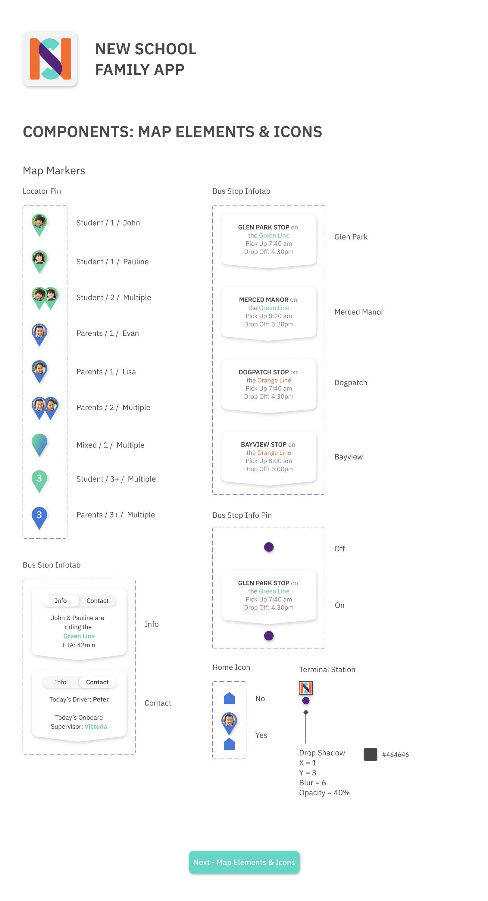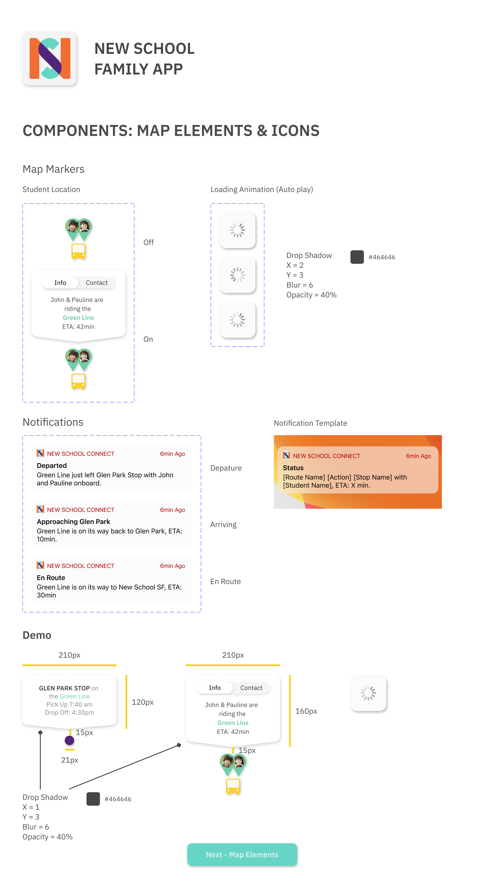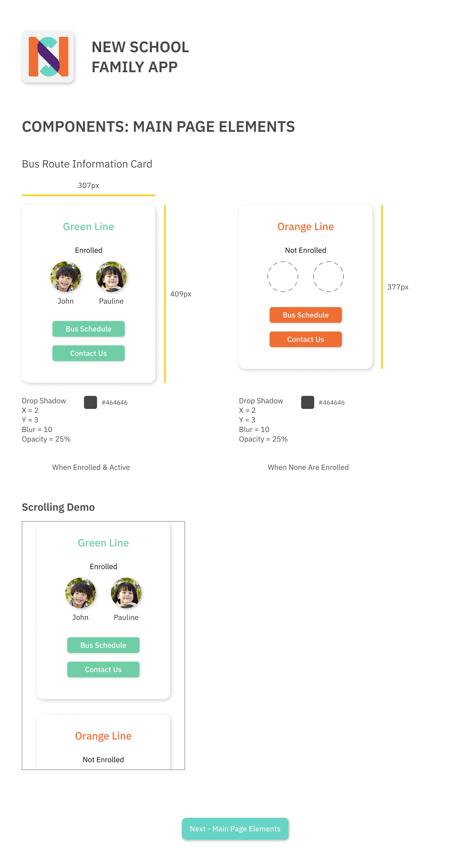 In addition to the Family App, we also proposed an additional section to the New School’s website. Dedicated to the bus program, this landing page will be providing detailed information such as rate, policy, and qualifications to those who are interested in enrolling as well as current families.
